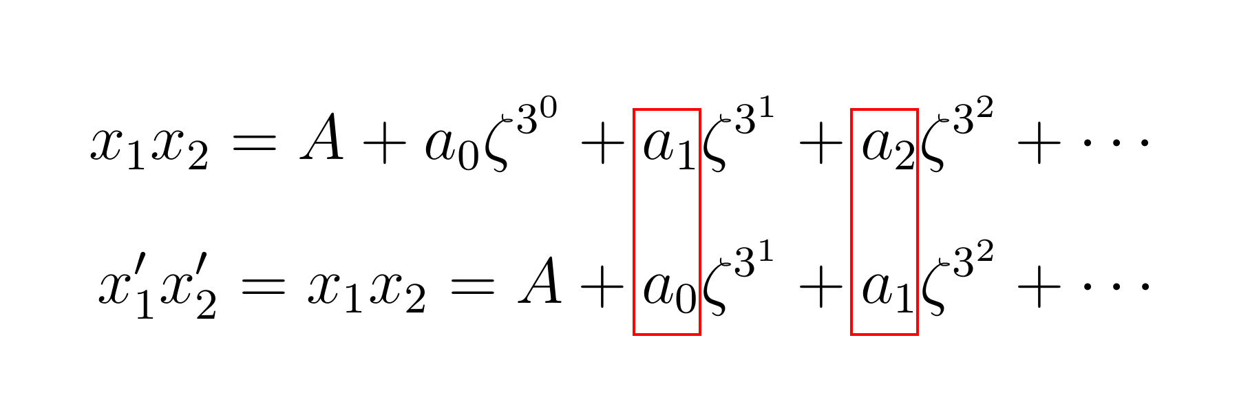 Comparing the coefficients of the latter two expressions, we see that