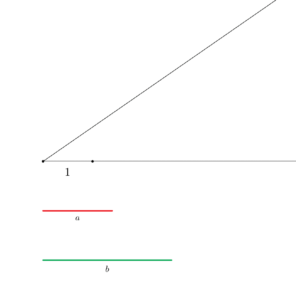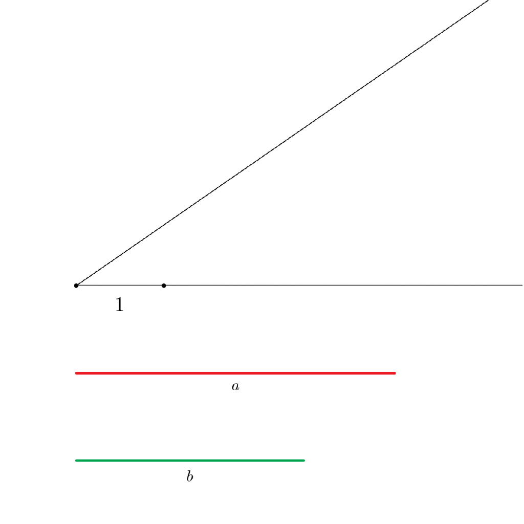 It’ll be helpful to define what it means for a number to be constructible algebraically. Take two line segments with lengths and