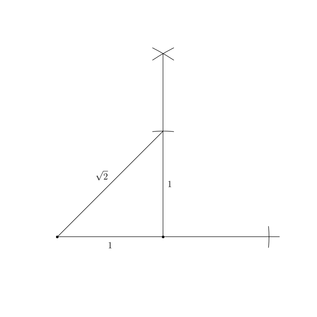 There’s one more operation that I’ve left out so far which can be translated into a geometric construction, and that’s the square root. Given some line segment of length , it’s possible to construct a line segment of length